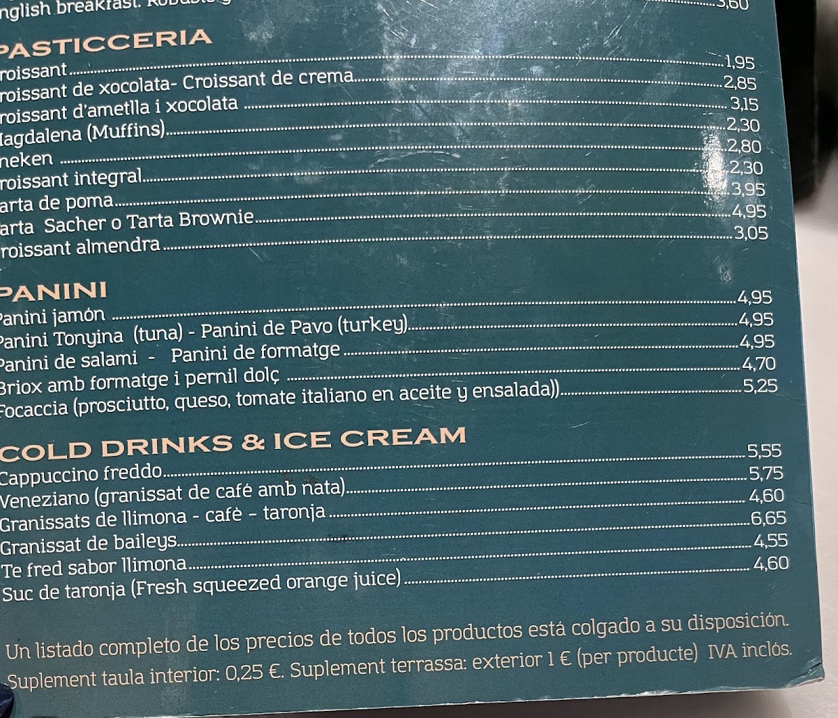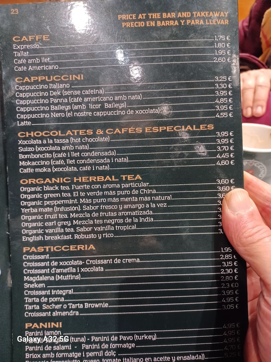 Cappuccino Via Laietana 23 Jaume 1 is more than just a café; it's an experience that blends warmth, style, and exceptional flavors in the heart of Barcelona. Nestled on Via Laietana, this charming spot welcomes you with a cozy ambiance underscored by vintage coffee grinders that enhance its unique vibe. Guests rave about the perfectly brewed cappuccinos and delightful pastries, like their famed churros with hot chocolate—truly a dessert to savor. The menu offers a range of delicious breakfast items, including almond croissants and savory paninis, catering to varied tastes and preferences. Patrons appreciate the attentive staff, who go above and beyond to ensure a welcoming atmosphere, whether you’re among locals or tourists. If you're searching for a beautifully presented meal in an inviting space, Cappuccino Via Laietana is a must-visit destination that promises to leave a lasting impression.
